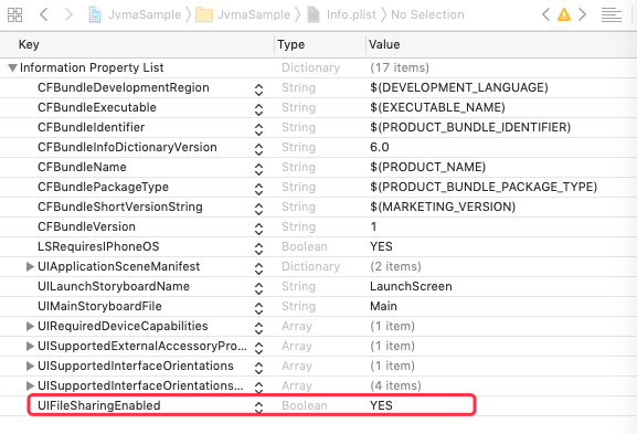 プロジェクトの Info.plist ファイルに、iTunesとのファイル共有を有効にするためのキー UIFileSharingEnabled を追加し、値を YES に設定してください。