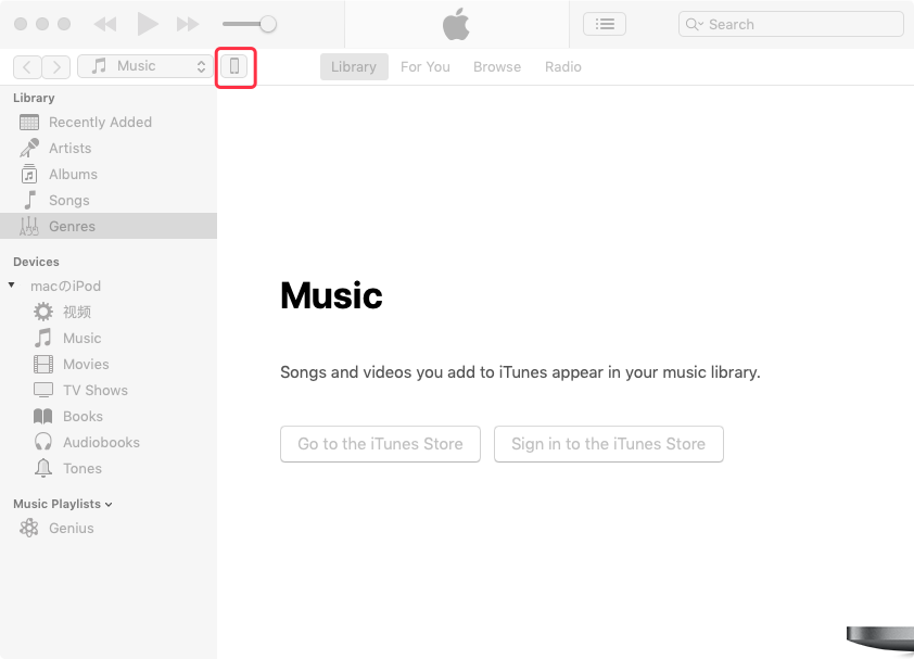 デバイスが正常に認識されると、iTunes にデバイスアイコンが表示されます。