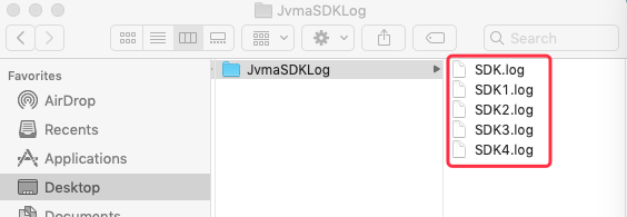 JvmaSDKLog フォルダ内には、最大で 5 つのログファイルが保存されます。