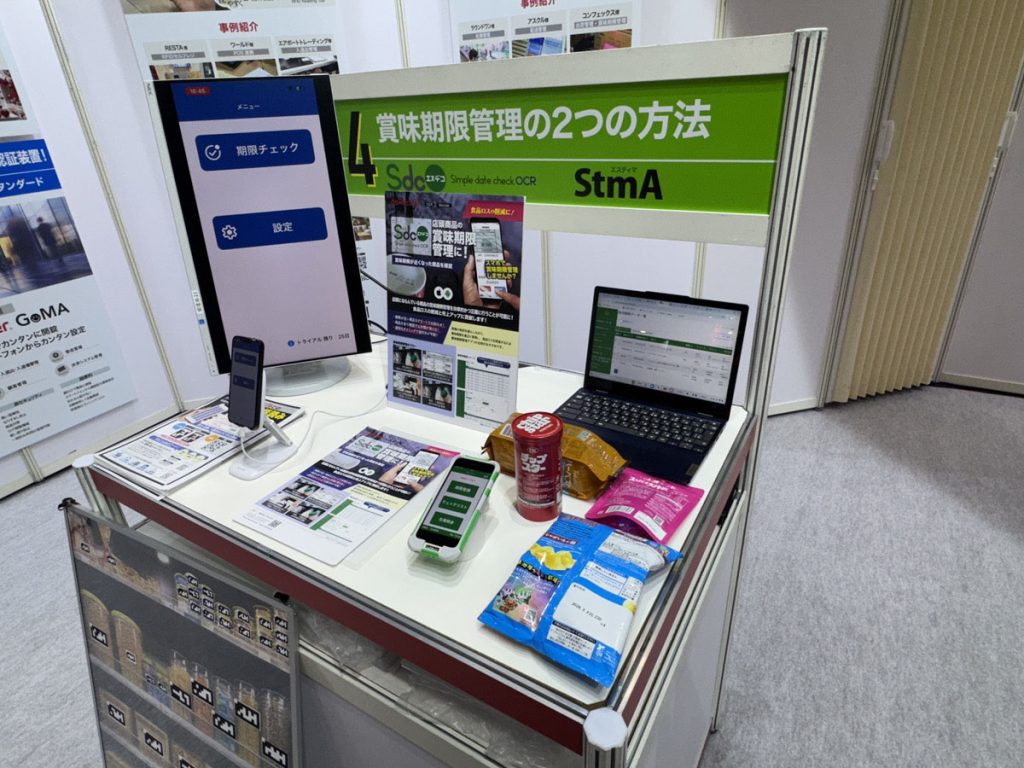 食品ロス削減と管理業務効率化を両立するソリューションであるSdcO(エスデコ)とStmA(エスティマ)。賞味期限管理に特化し、スーパーや食料品店で使いやすいSdcOと、当社オリジナルの二次元コードAsCodeを使って、賞味期限だけでなくレンタル品の期日管理や駐輪場の契約管理まで行えるStmAの実演を行いました。